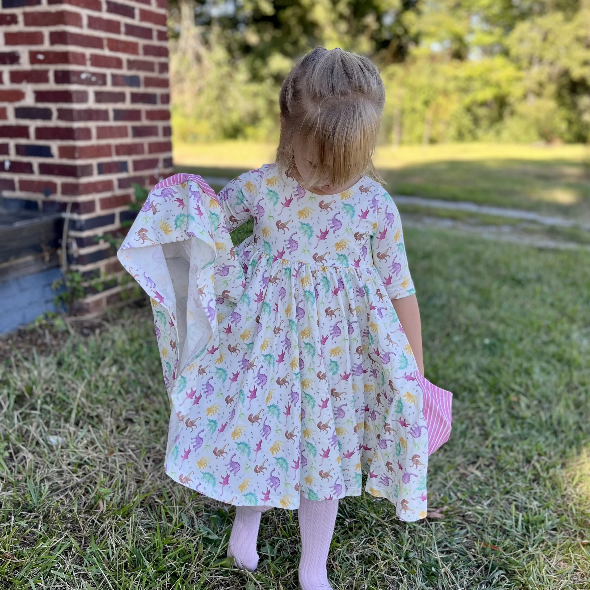 Get ready for an adventure on the high seas! The shirt features whales, narwhals, sea turtles, and more in whimsical designs, while the shorts are a coordinating deep blue. The fabric is super-soft 95% organic cotton and 5% spandex. The shorts also feature cargo pockets on either side - perfect for storing treasures found on adventures throughout the day!